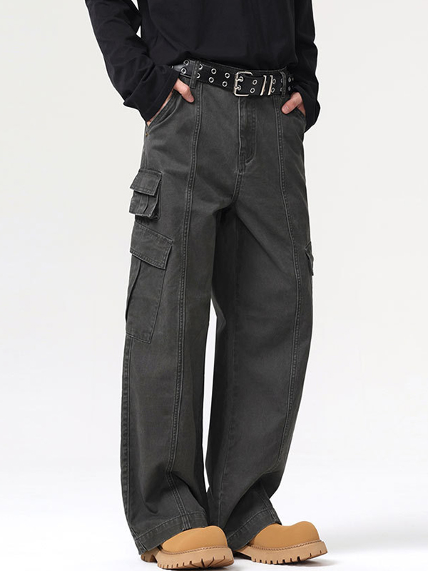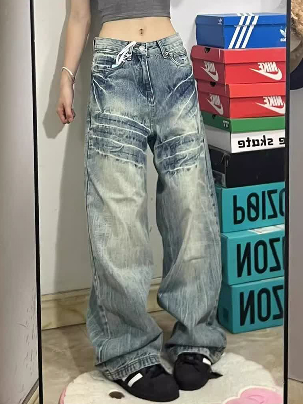 Verwaschene, lockere Patchwork-Jeans für Herren