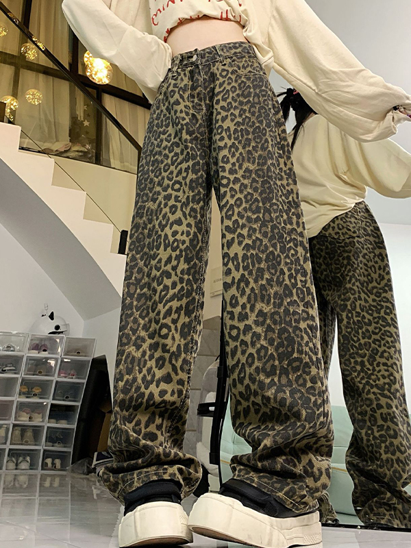 Herren-Jeans mit geradem Bein und Leopardenmuster in Vintage-Waschung