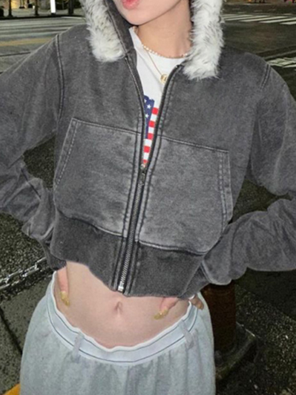 American Vintage – Jacke mit gewaschenem Pelzkragen