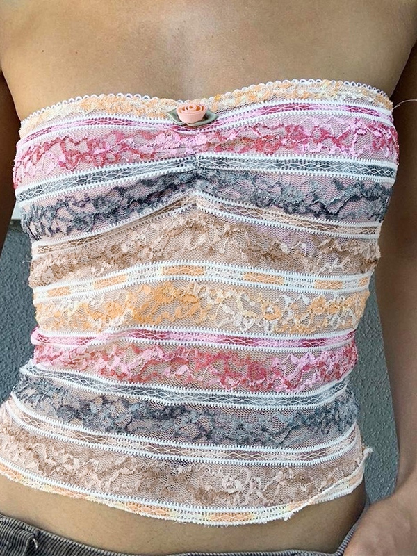 Buntes, kurzes Bandeau-Top aus Spitze