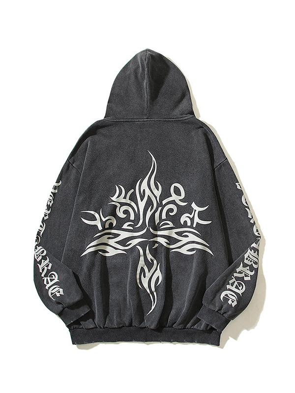 Übergroßer Kapuzenpullover mit langen Ärmeln und dunklem Print für Herren