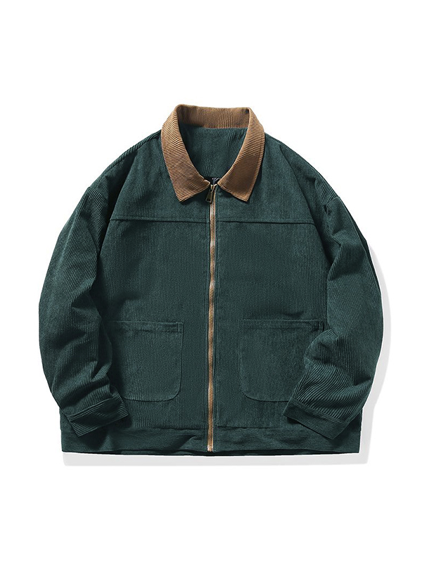 Vintage-Herrenjacke aus Cord mit Reverskragen und Reißverschluss