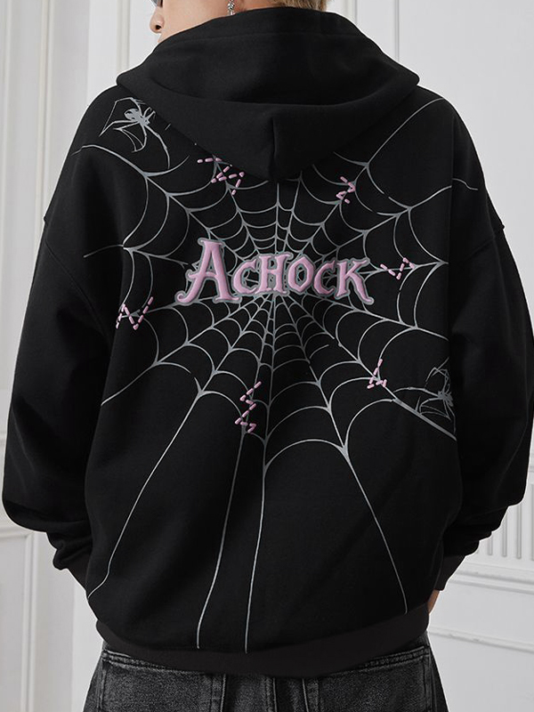 Herren-Jacke mit Reißverschluss und Street-Spinnennetz-Print