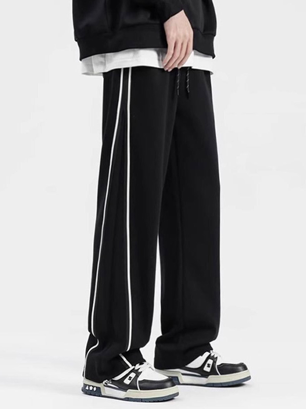 Gestreifte Freizeit-Sporthose für Herren mit weitem Bein