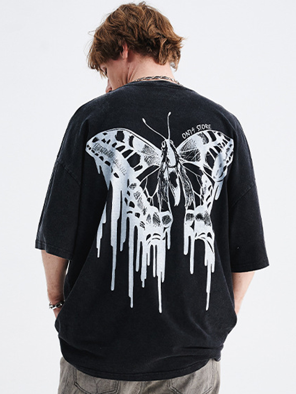 Übergroßes, kurzärmliges T-Shirt mit Flügel-Print für Herren