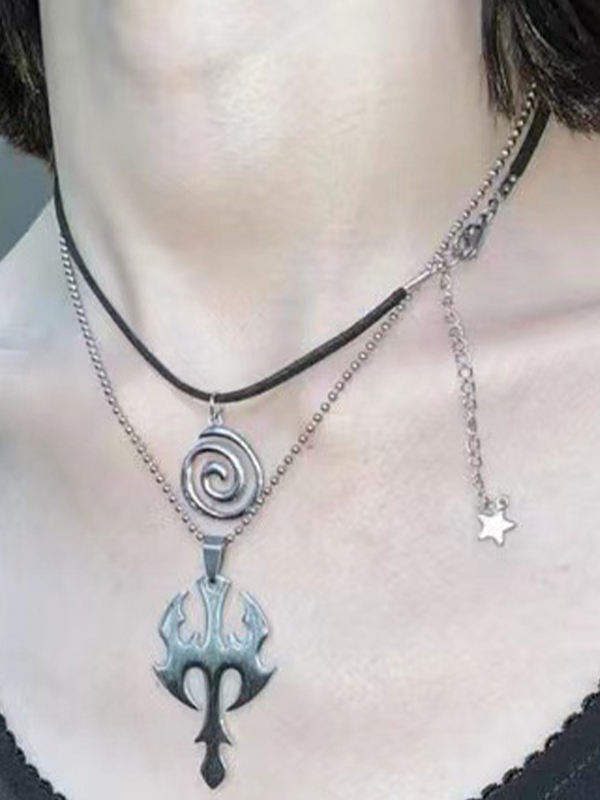 Halskette aus geflochtenem Leder mit Punk-Swirl-Anhänger