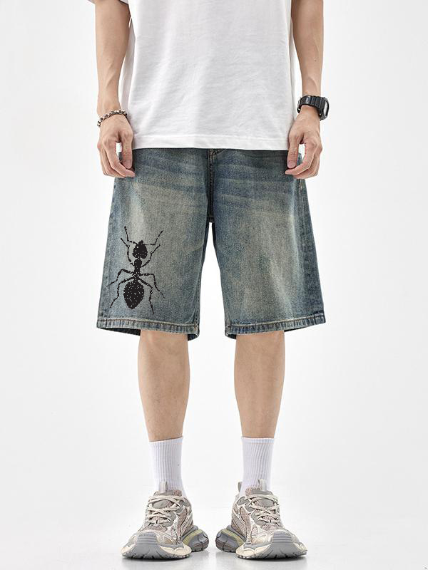 Lockere, lässige Jeansshorts für Herren mit Ameisen-Print