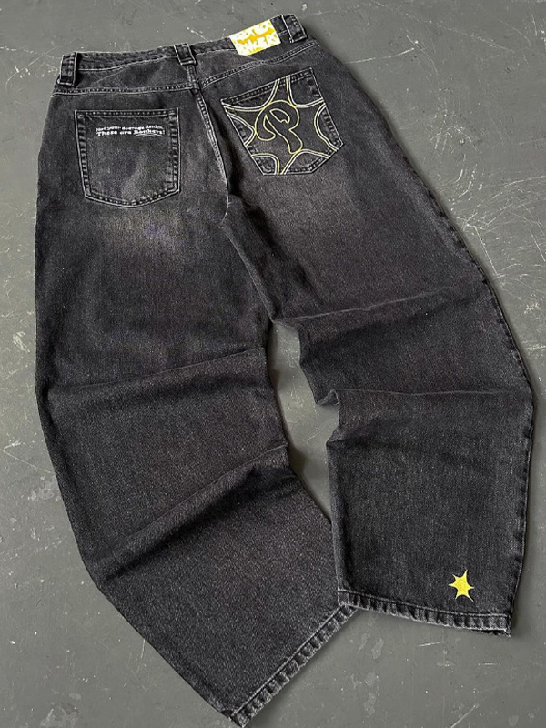 Gerade, lockere Denim-Shorts für Herren mit Distressed-Stickerei