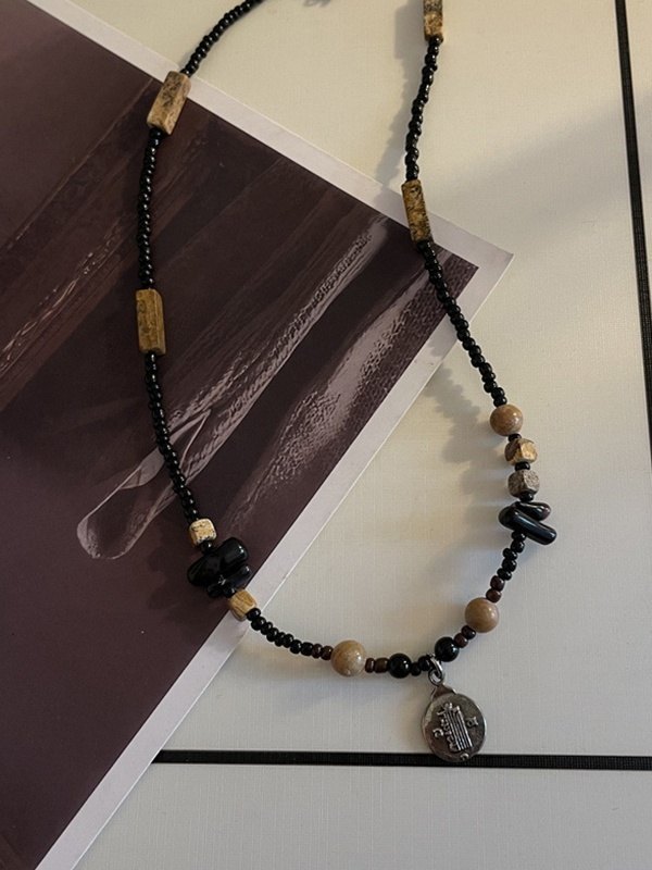 Ethnische Halskette mit Natursteinperlen