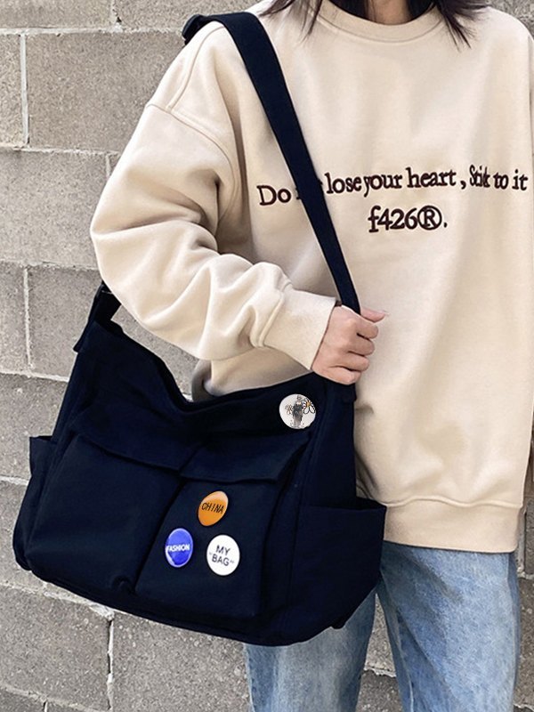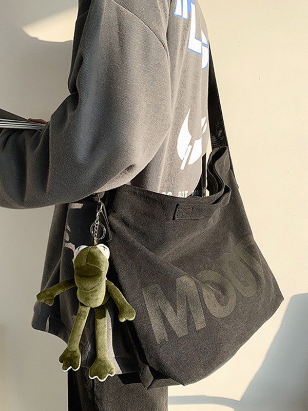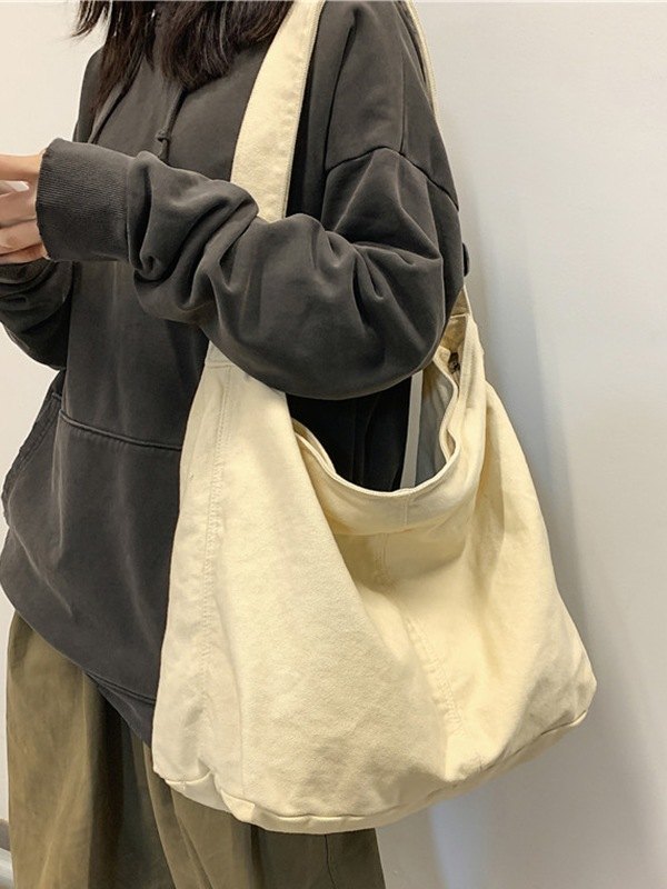 Gewaschene große Canvas-Umhängetasche