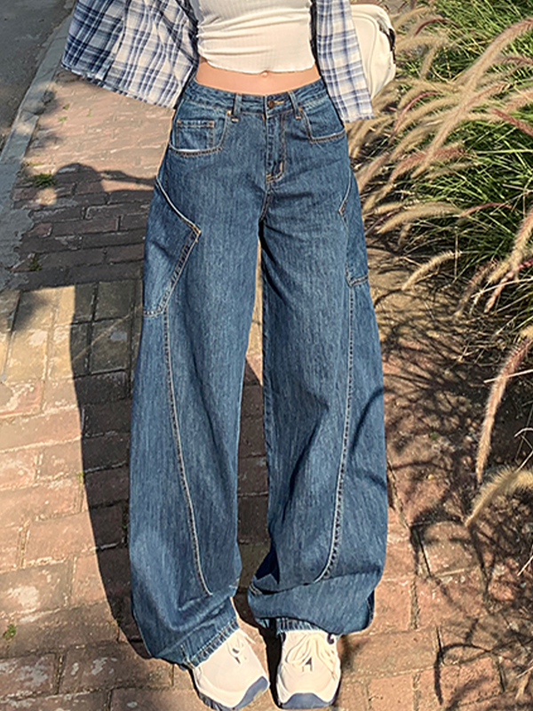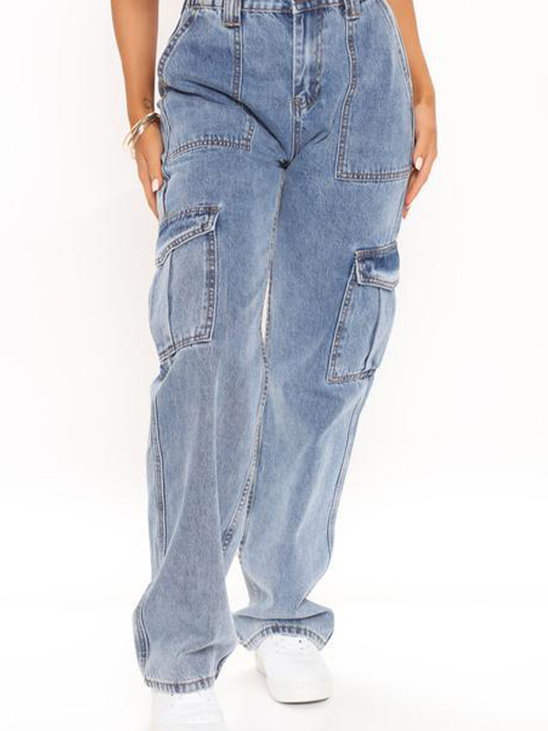 Blaue Cargo-Jeans mit mehreren Taschen