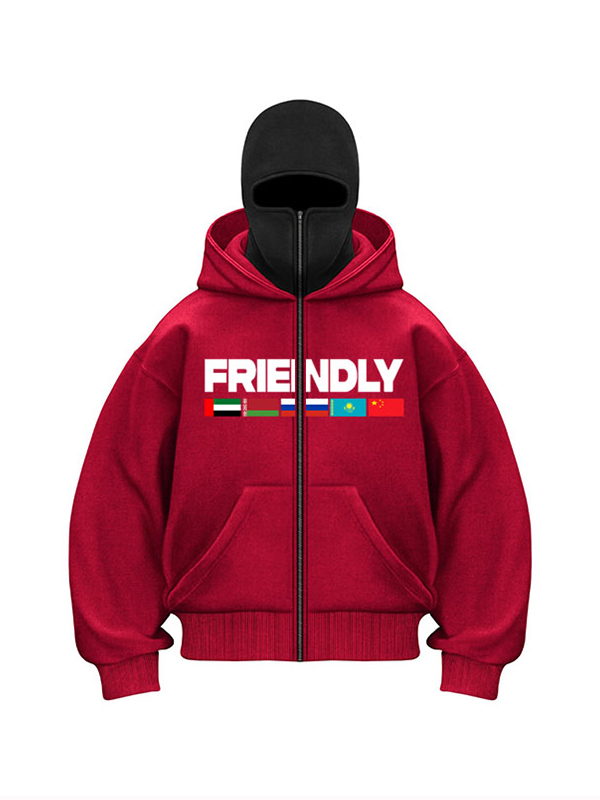 Übergroßer Kapuzenpullover mit durchgehendem Reißverschluss und Street-Grafikdruck für Herren