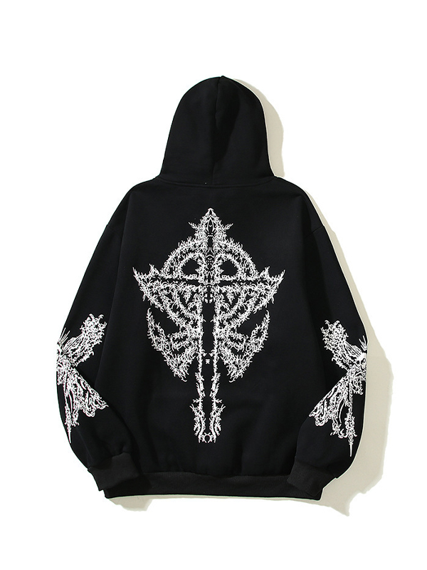 Übergroßer Kapuzenpullover mit Hip-Pop-Kreuzschädel-Print für Herren