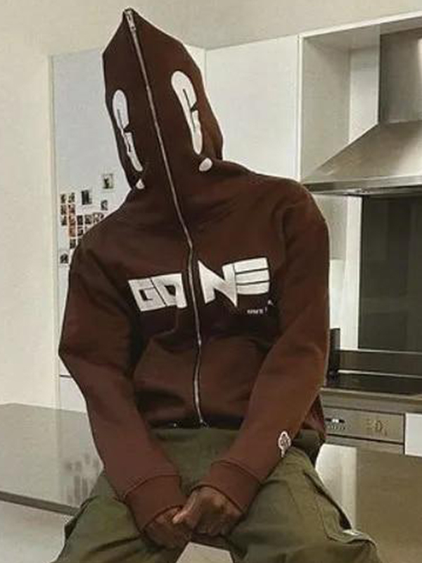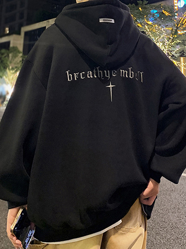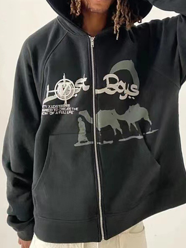 Übergroßer Herren-Hoodie mit hellem Aufdruck und durchgehendem Reißverschluss