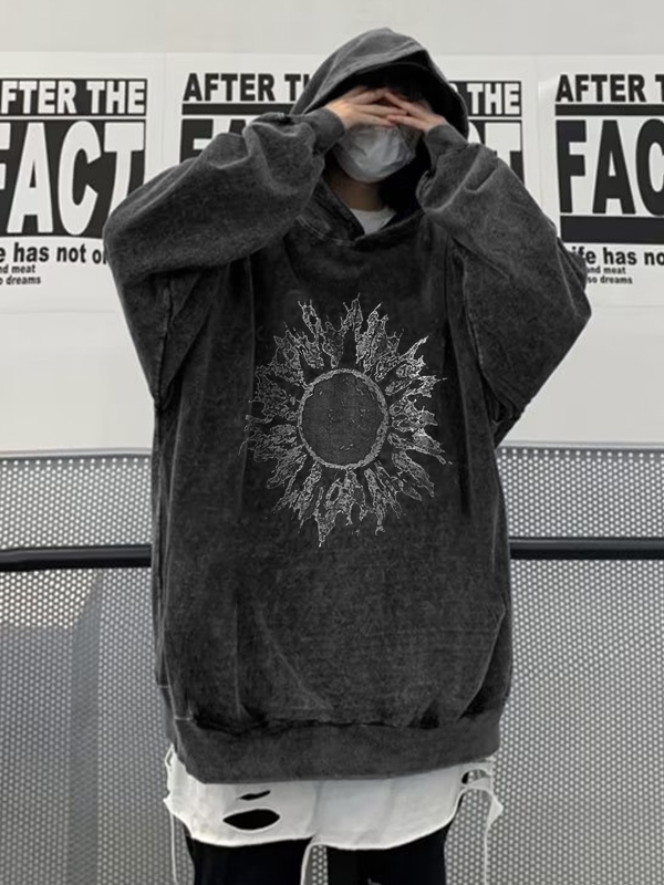 Übergroßer Kapuzenpullover mit Distressed Sun-Print für Herren