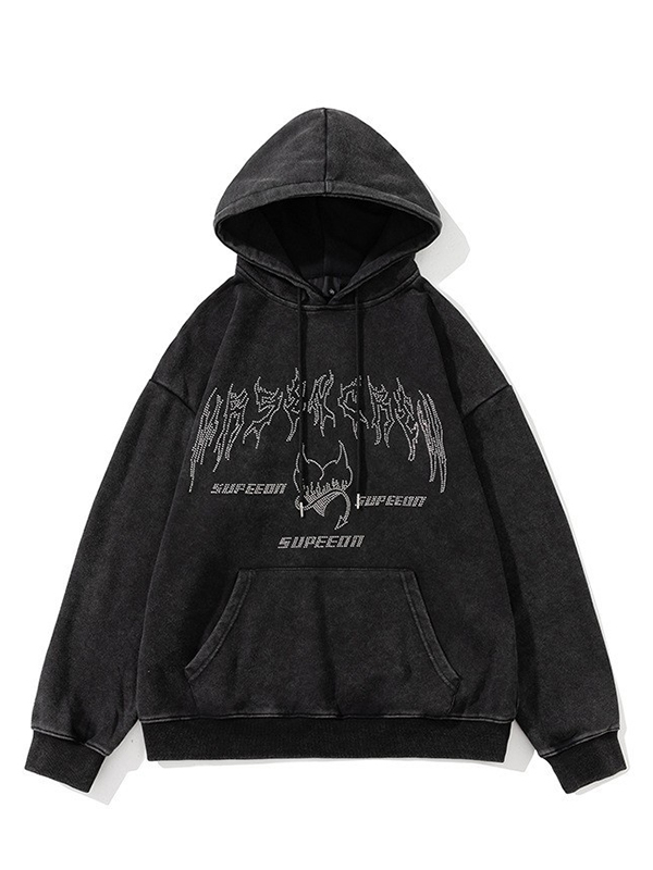 Übergroßer Kapuzenpullover mit Skelett-Schmetterling und Strasssteinen für Herren