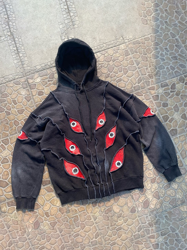 Übergroßer Kapuzenpullover mit bestickter Augenklappe für Herren