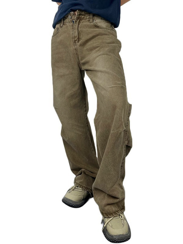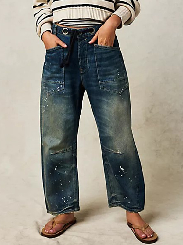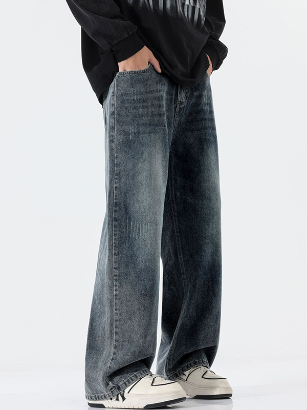 Lockere Jeans im amerikanischen Stil mit verwaschenem und abgenutztem Micro-Speaker-Muster