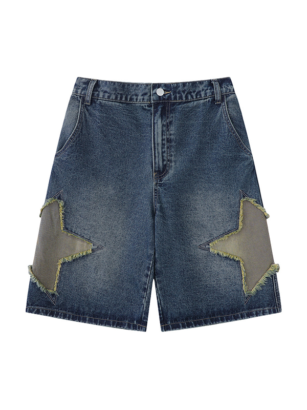 Lockere Jeansshorts mit Vintage-Stern-Patch für Herren