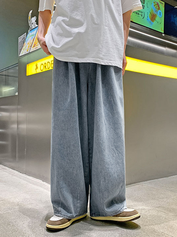 Gewaschene Baggy-Mopping-Hose mit weitem Bein für Herren