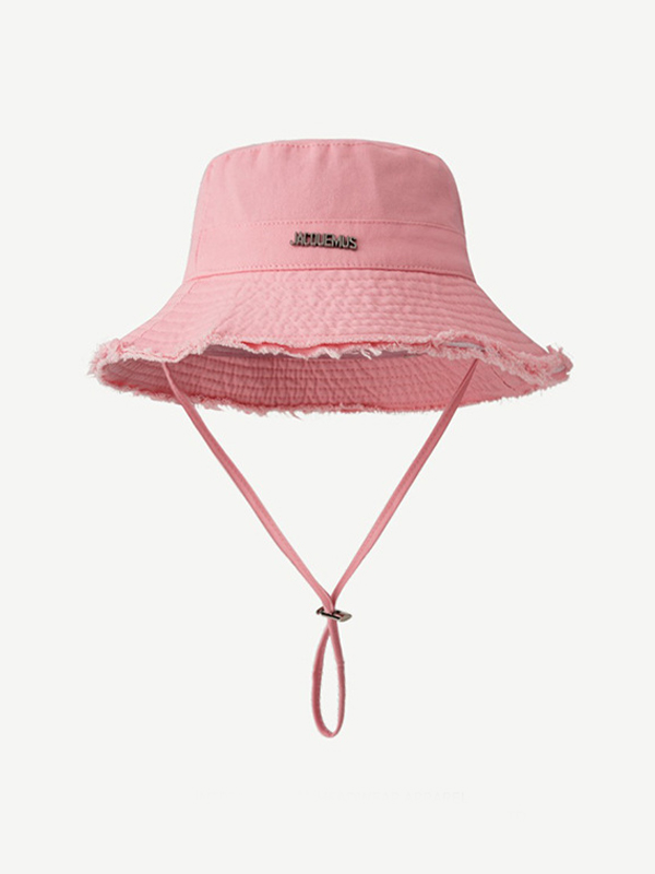 Verstellbarer Fischerhut aus massivem Metall mit Buchstabendekor und rohem Besatz