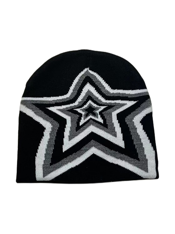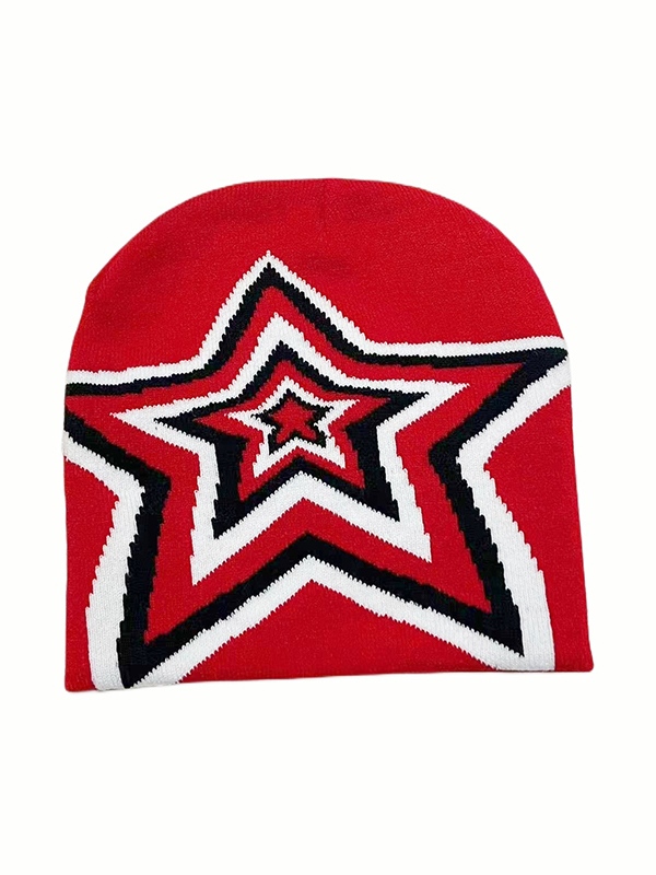 Kontrastfarbene Stern-Jacquard-Mütze