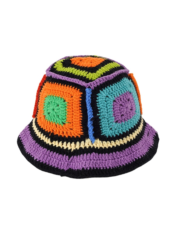 Kontrastfarbene Strickmütze mit quadratischem Design