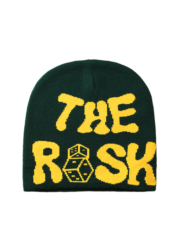 Kontrastfarbene Beanie-Mütze mit Buchstaben-Würfel-Print