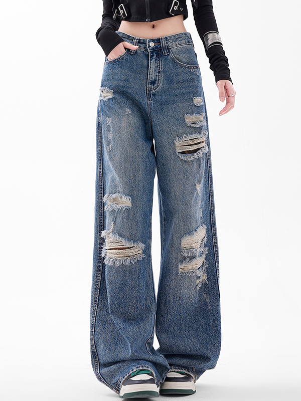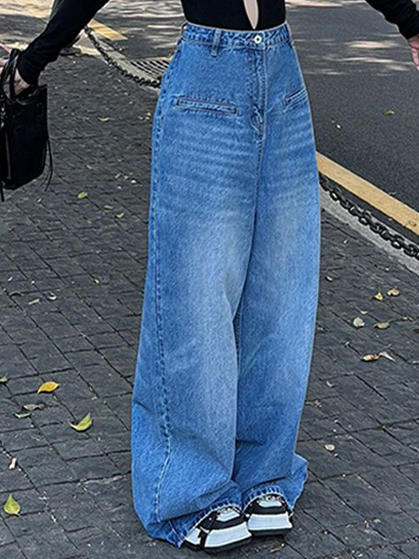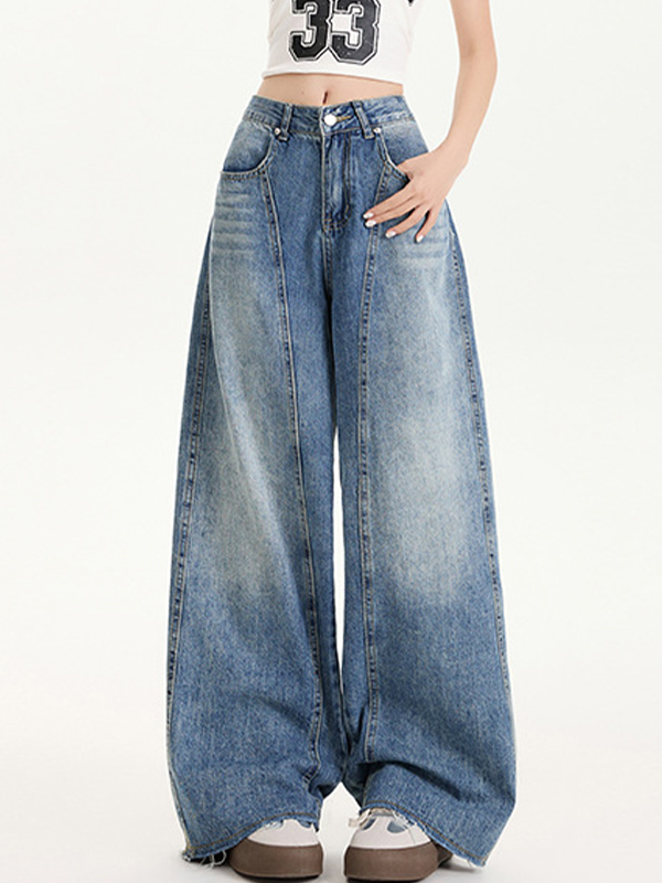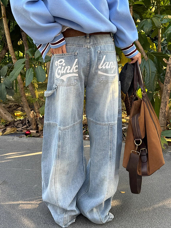 Amerikanische trendige lockere Jeans mit halbelastischer Taille