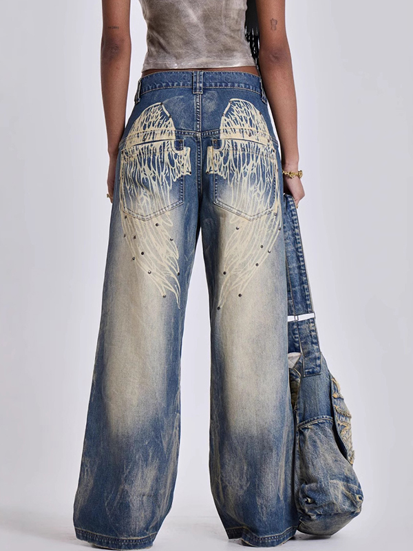 Boyfriendjeans mit Flügel-Print und Farbverlauf