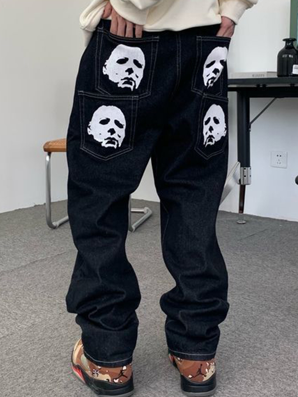 Gerade geschnittene Jeans für Herren mit Fledermaus-Print