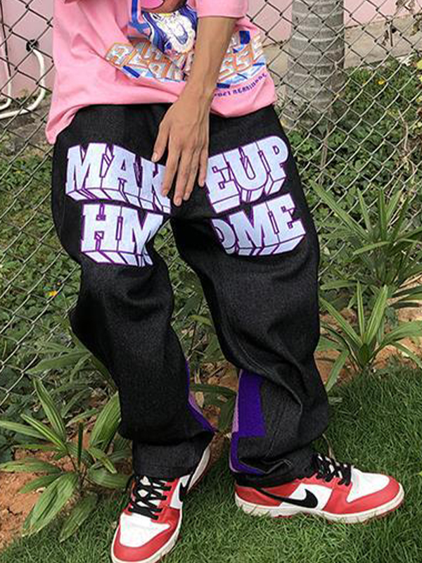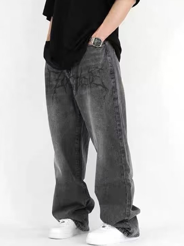 Lose Herrenjeans mit verwaschenem Crackle-Print