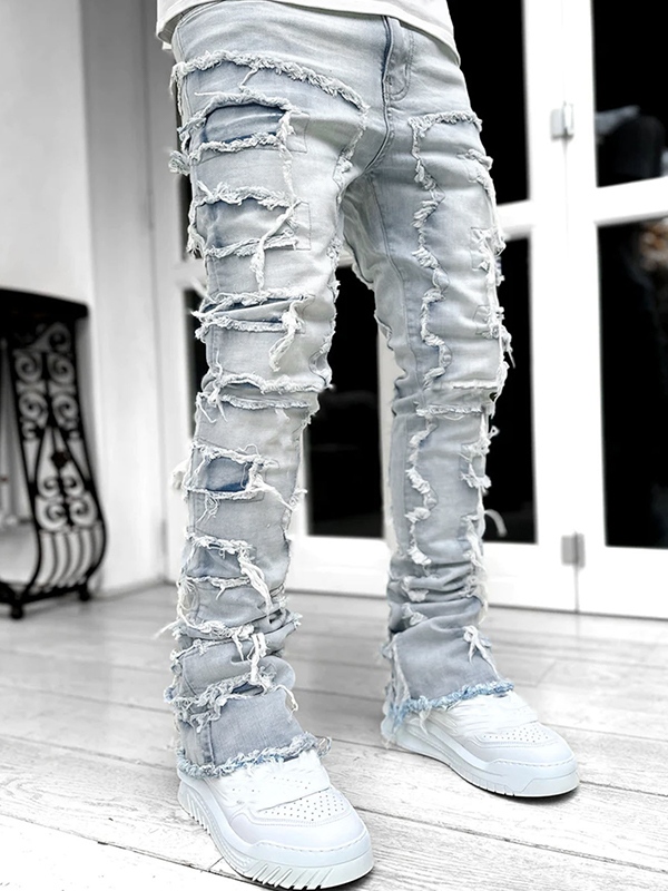Hellblaue Slim-Jeans mit Raw Trim für Herren