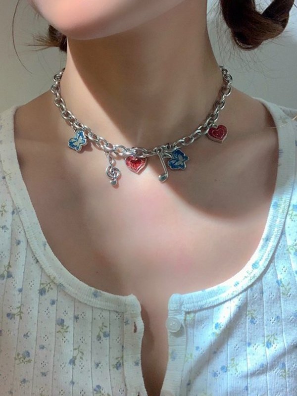 Romantische Schmetterlings-Herz-Charme-Halskette