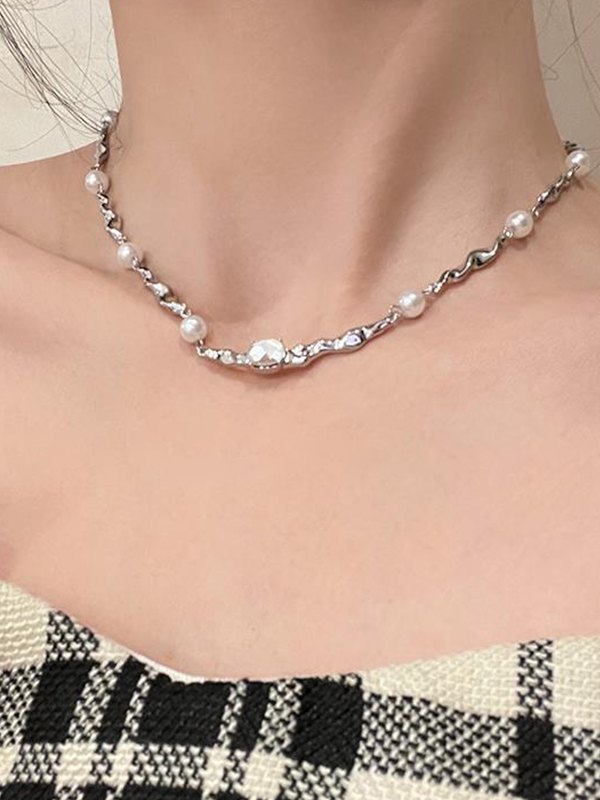 Strass-Schmetterlings-Faux-Perlen-Halskette