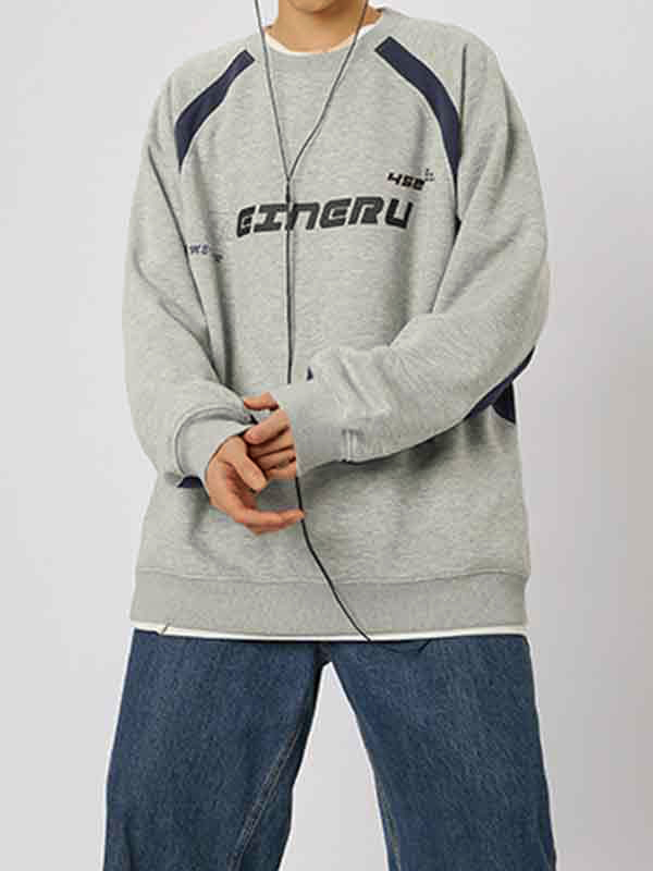 Herren-Langarm-T-Shirt mit Vintage-Print und Patchwork-Design