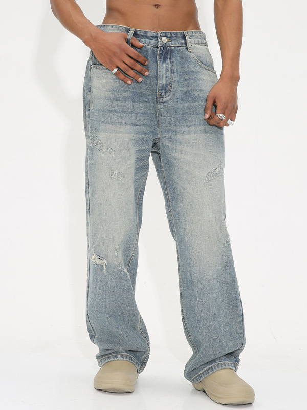 Zerrissene, lose Herrenjeans im Distressed-Vintage-Stil in Blau