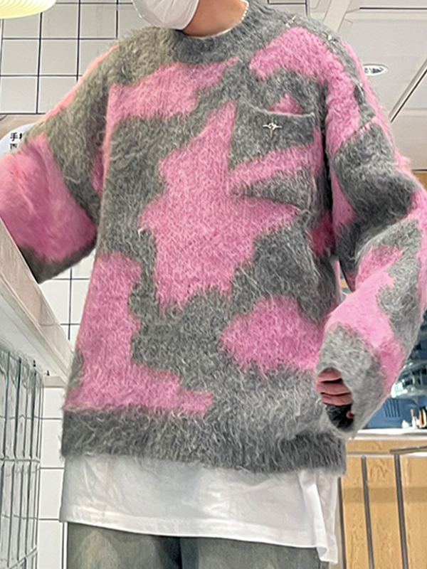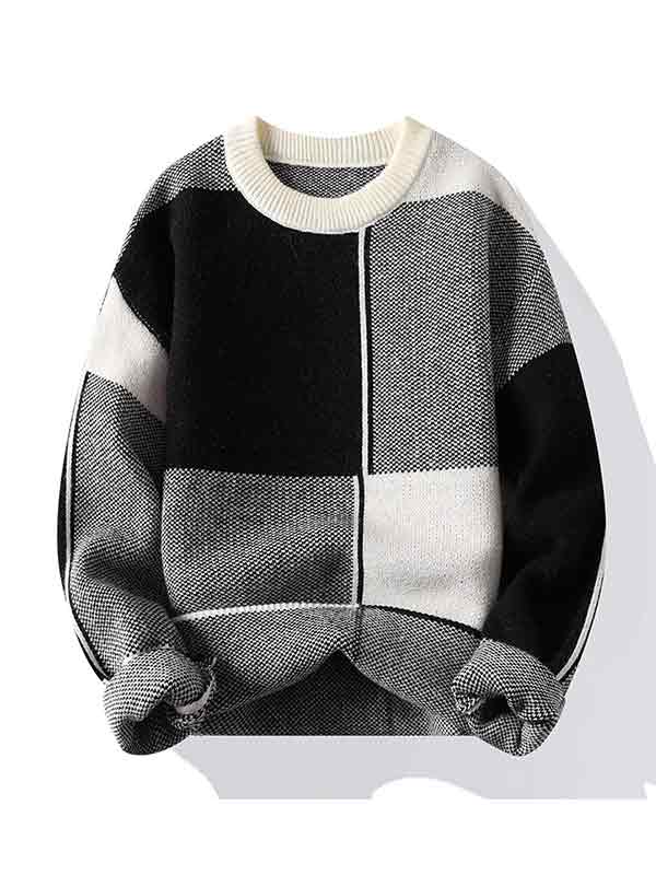 Herrenpullover mit unregelmäßigem Farbblock-Splice-Jacquardmuster