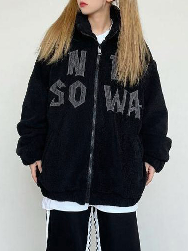 Übergroße Jacke aus Lammwolle mit Buchstabenstickerei
