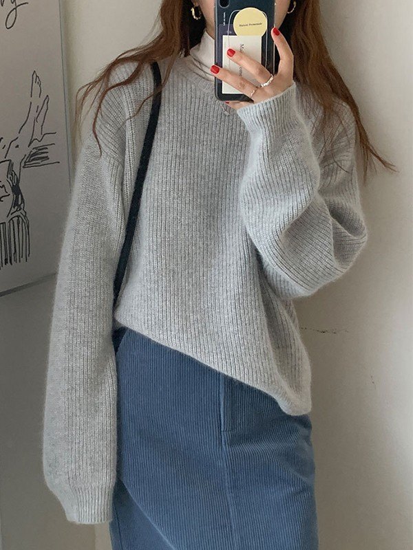 Einfarbiger Pullover mit Rundhalsausschnitt