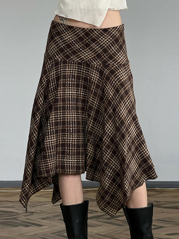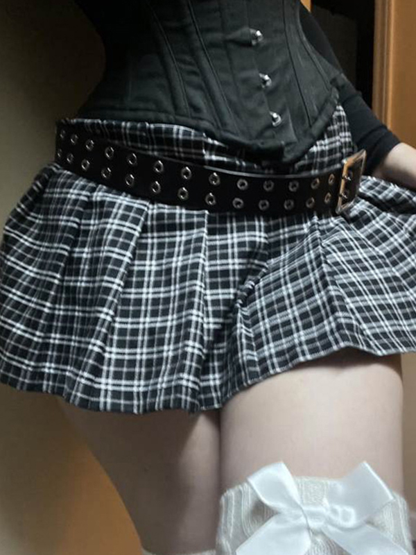 Retro-Karomuster mit niedriger Taille zur Reduzierung des Alters Miniröcke