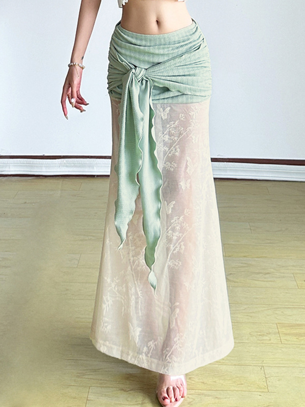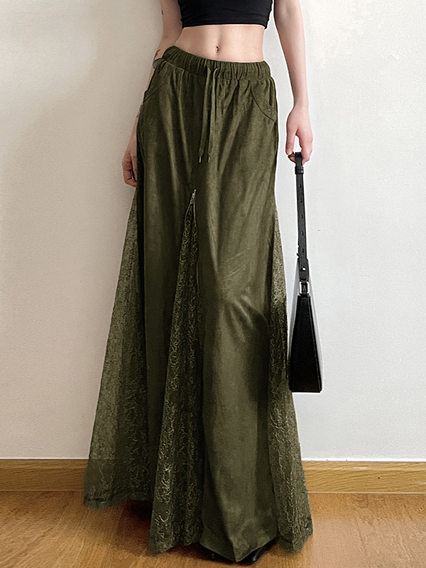Vintage Grüner Patchwork Maxirock aus Spitze