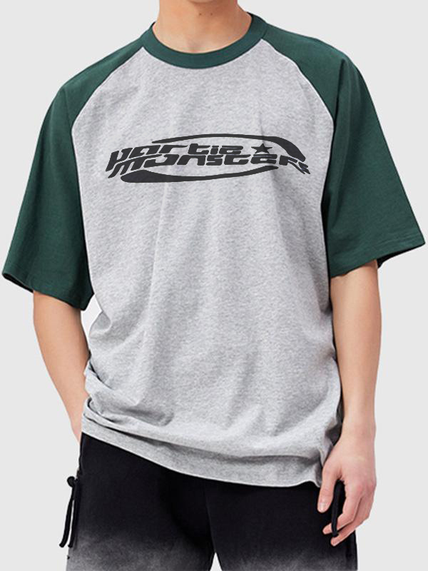Übergroßes Kurzarm-T-Shirt mit Raglanärmeln und Schriftzug für Herren