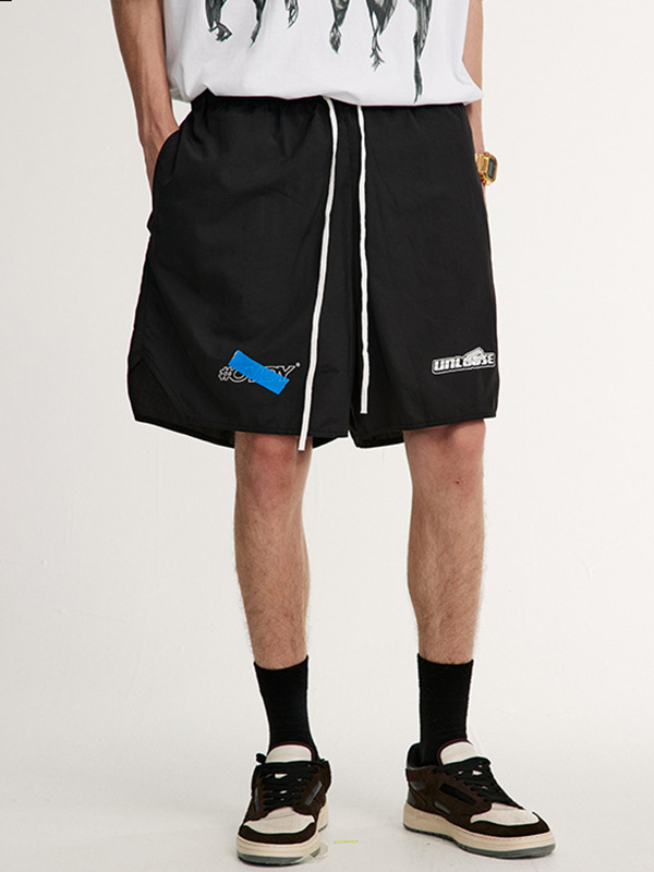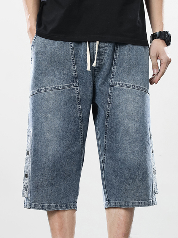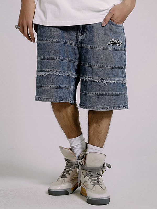 Gerade, lockere Denim-Shorts für Herren mit Distressed-Stickerei