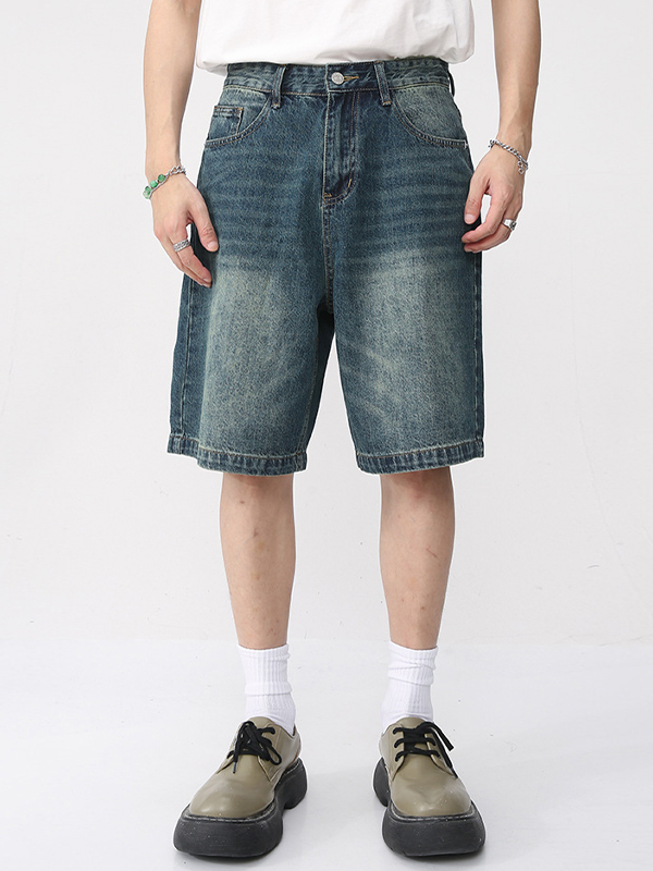 Gerade Jeansshorts im Retro-Stil mit weitem Bein für Herren