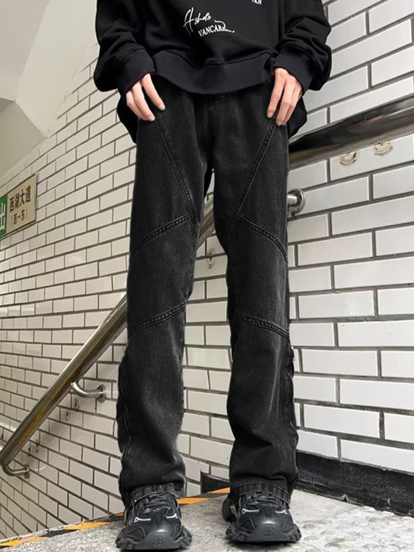 Herren-Street-Wash-Jeans mit geradem Bein und Reißverschluss