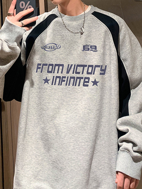Raglan-Spleiß-Sweatshirt mit Retro-Buchstabenmuster für Herren