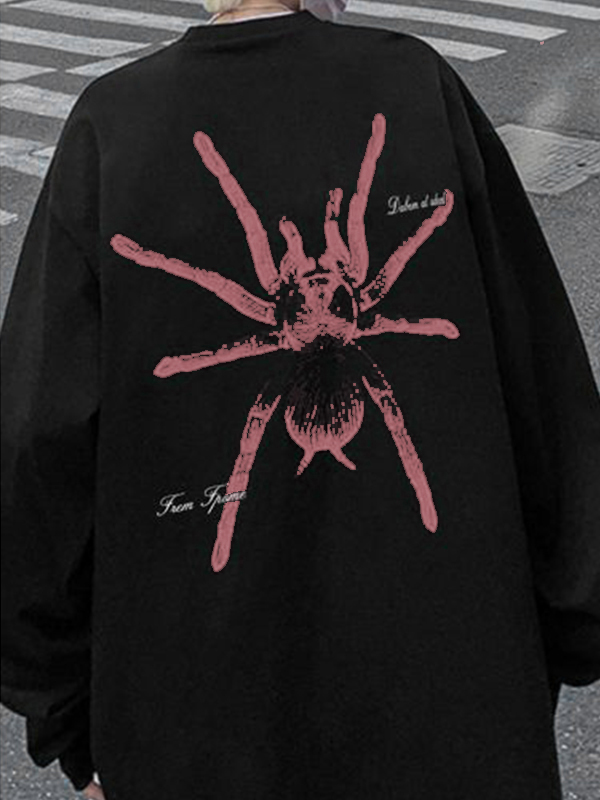 Herren-Langarm-T-Shirt mit Buchstaben- und Spinnenmuster