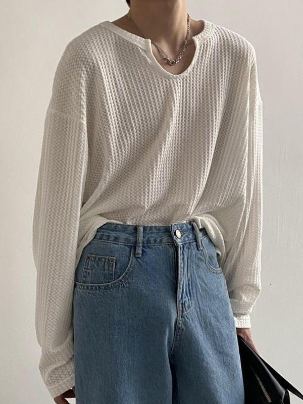 Einfaches Waffel-Langarm-T-Shirt für Herren