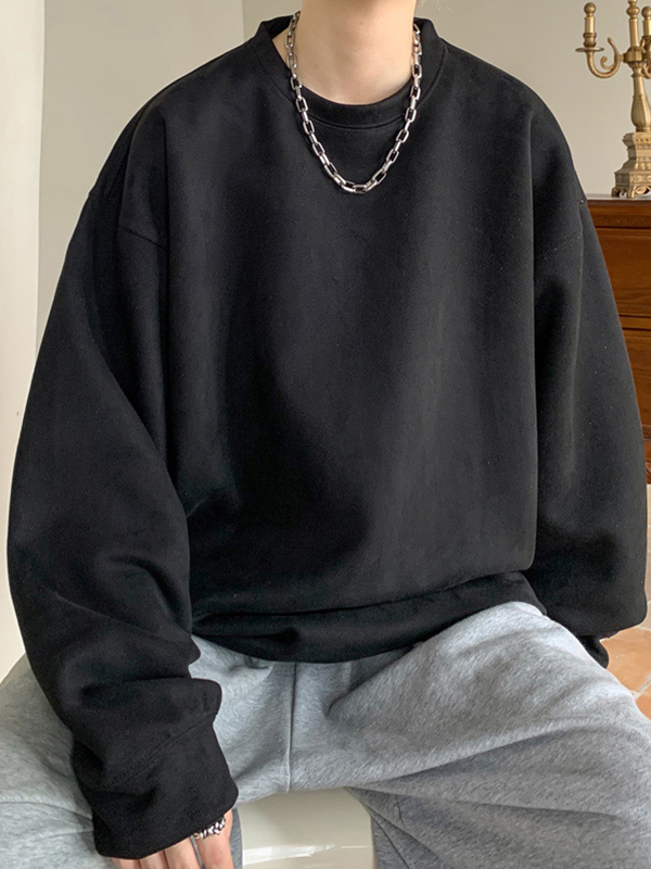 Herren-T-Shirt aus einfarbigem Wildleder mit langen Ärmeln
